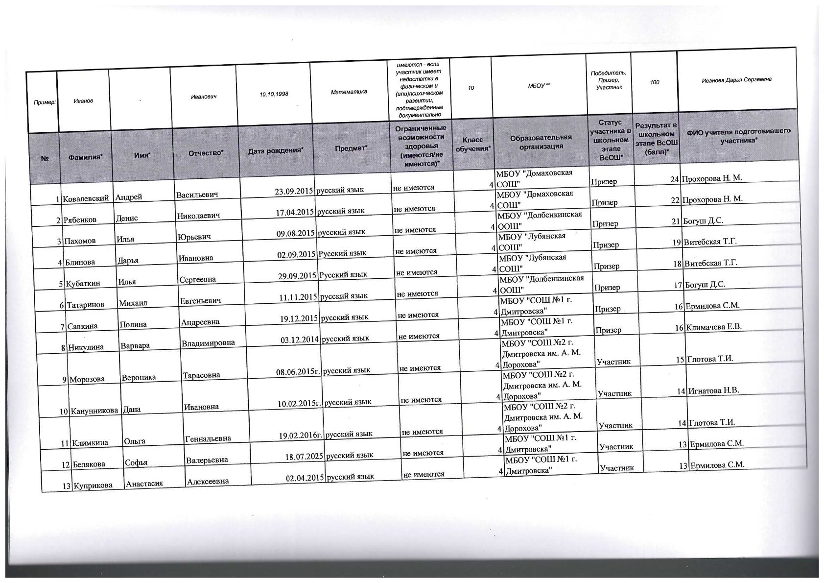 Персональный состав комиссии по делам несовершеннолетних и защите их прав при администрации Дмитровского района