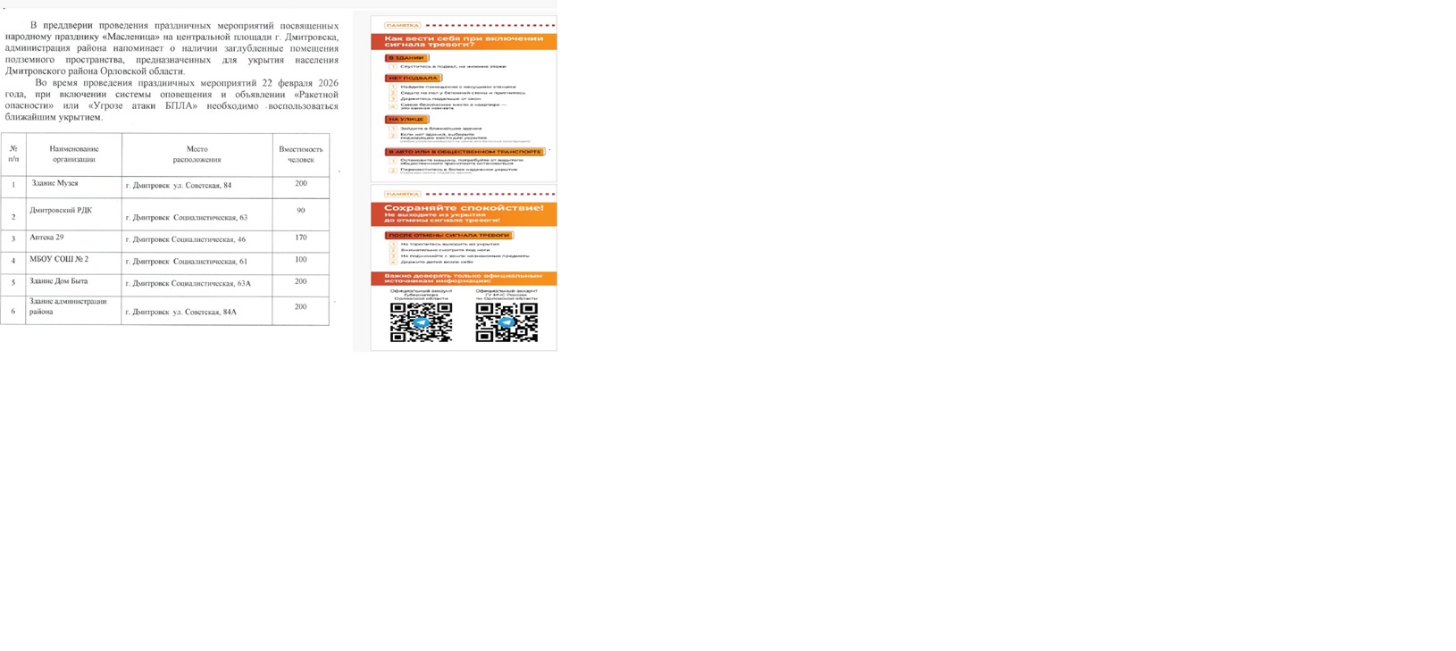 Заглубленные помещения подземного пространства, предназначенные для укрытия населения Дмитровского района Орловской области (нанесенные на единую интерактивную карту)