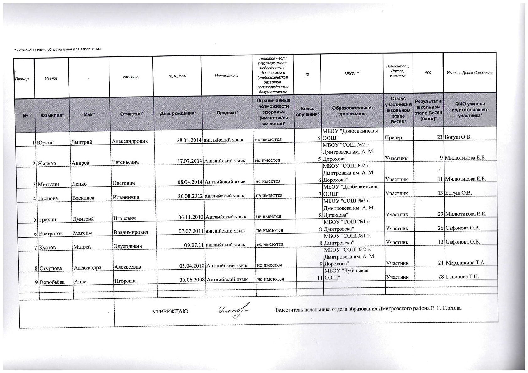 Персональный состав комиссии по делам несовершеннолетних и защите их прав при администрации Дмитровского района