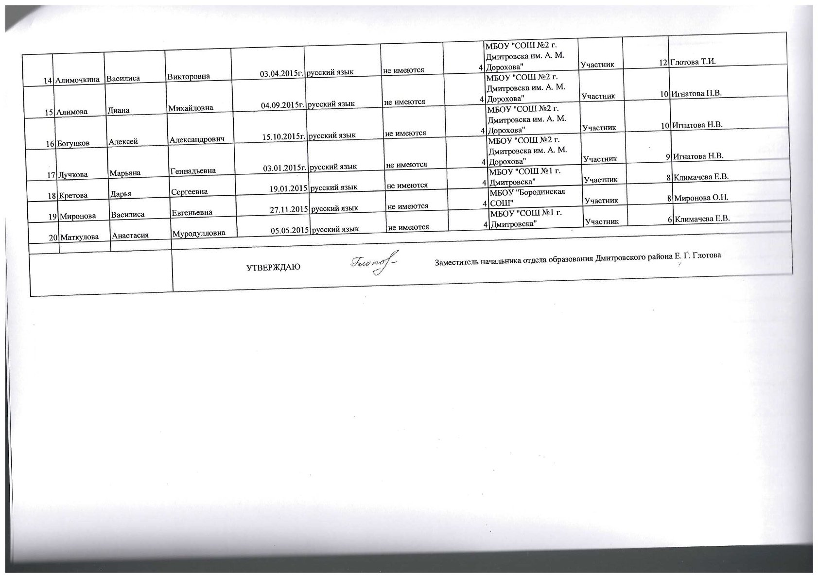 Персональный состав комиссии по делам несовершеннолетних и защите их прав при администрации Дмитровского района