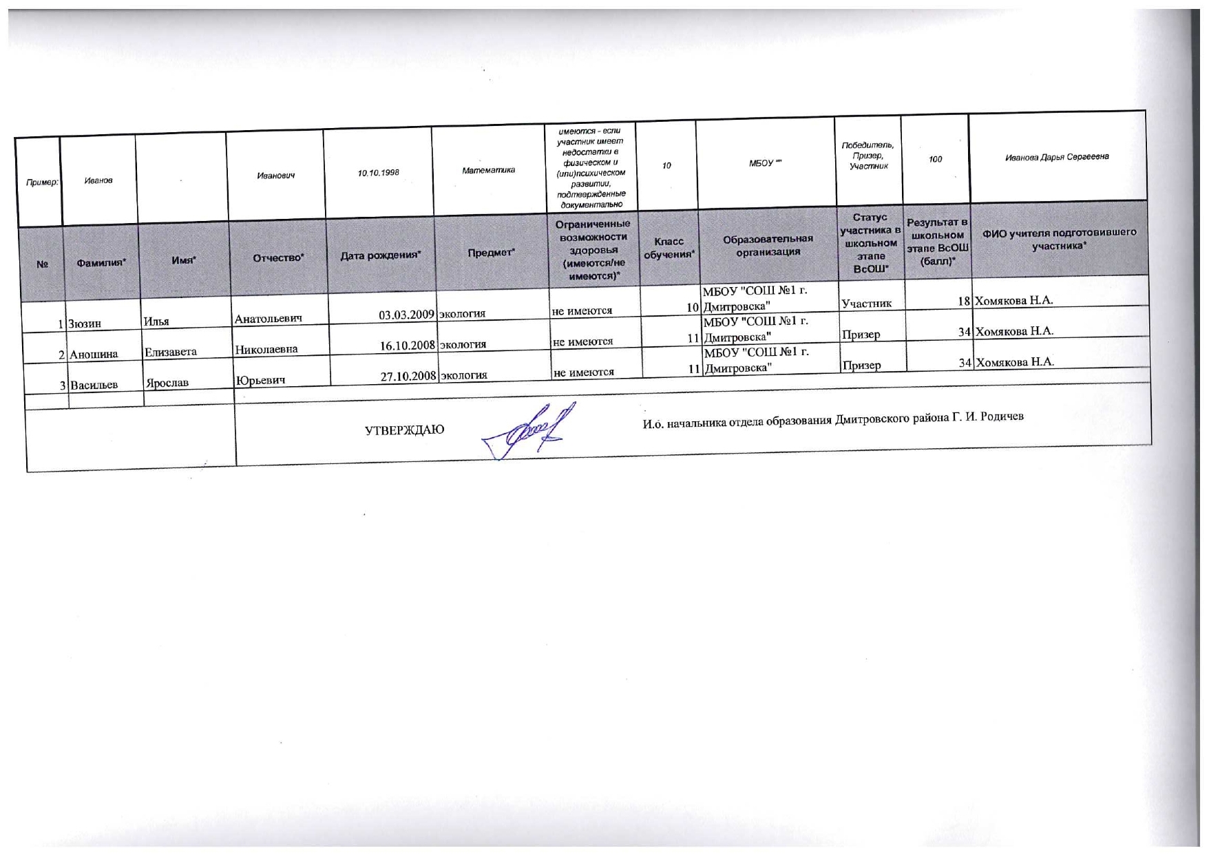 Персональный состав комиссии по делам несовершеннолетних и защите их прав при администрации Дмитровского района